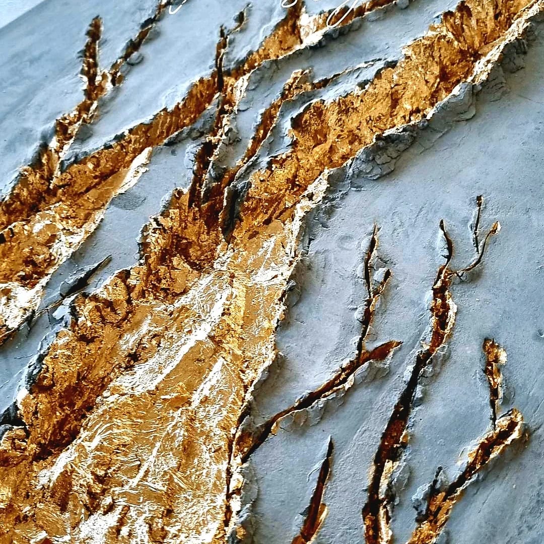 Maatwerk Betonindustrie. 70 x50 cm 24k bladgoud in opengewerkt beton